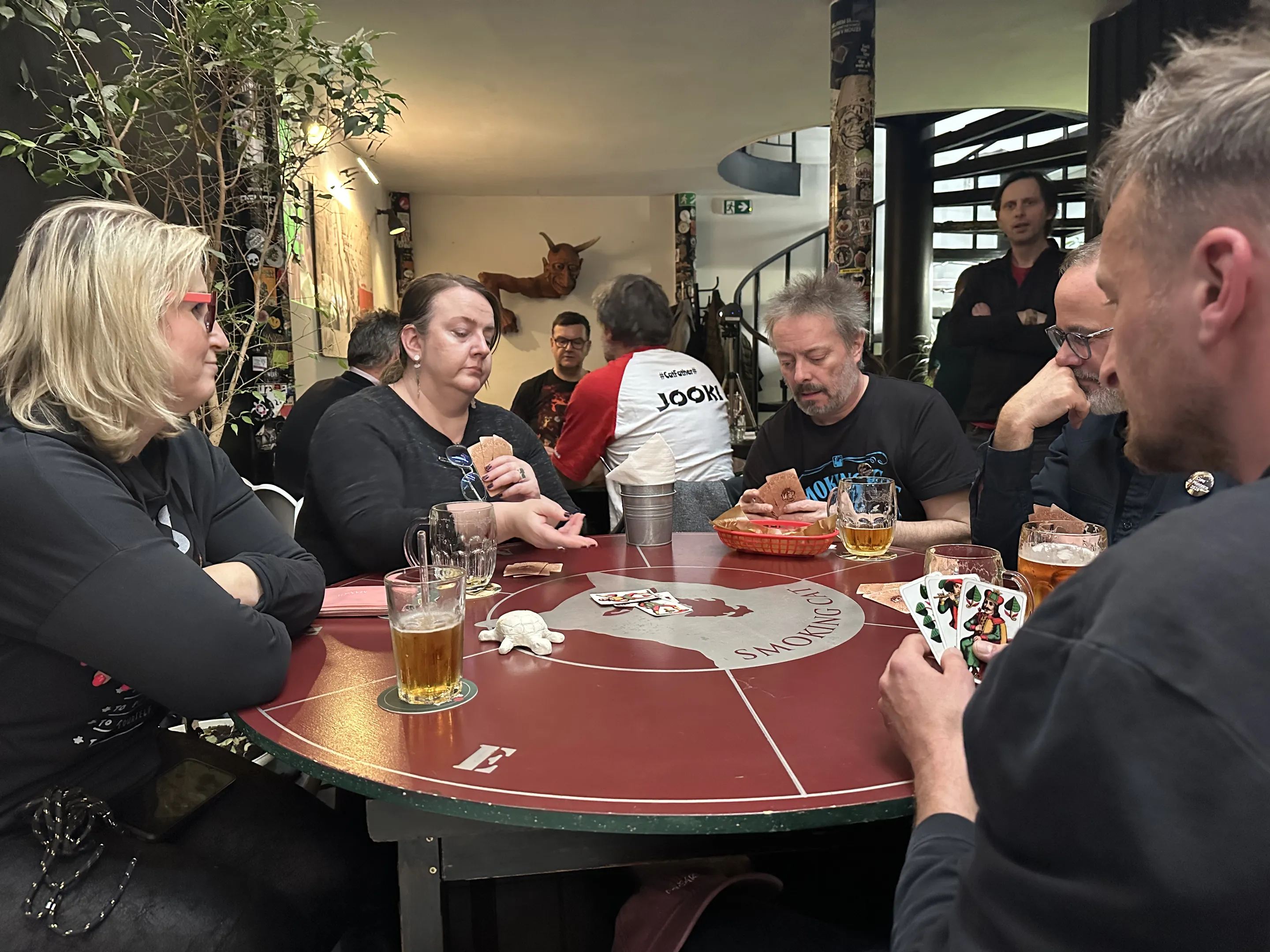 Hladina věcných cen ale není určitě jedinou věcí, která se musí změnit. Tou nejzásadnější změnou musí být dynamika hry. Většina partií byla divácky zcela nekoukatelná a turnaj se dohrával ještě po 23. hodině. Pokud by se měl dále držet tento trend, může se snadno stát, že se brzy bude hrát jedna partie patnáct nebo dvacet minut. Šílené. Rozhodčí má pochopení pro přemýšlení nad některými tahy, ale těžko může tolerovat půlminutové rozhodování u sedmi štychů každé kolo. Takhle se Kočka nehraje. Takhle se hrají šachy. Stejně tak rozhodčí může vyzvat hráče k rychlejšímu rozdávání a to, že se hráčka „cítí dotčena“ touto výzvou, nedává žádný smysl. Pokud je v pravidlech, že hra má být dynamická, tak „dotčení“ zbytečným zdržováním by měli být všichni okolo. Hráči, kteří musí držet průběh hry dlouhé minuty, i když Kočka je hra strategická, nikoliv soutěžení v krátkodobé paměti. Pořadatelé, kteří se musí vejít do časových možností prostoru, kde se hraje. Personál toho podniku. Diváci, kteří chtějí vidět hru a ne nekonečné vzdychání a zírání do dvojice karet, z nichž jedna je žaludský král a druhá žaludské eso. Ne, nesmějte se, viděl jsem neuvěřitelná „přemýšlení“ za svojí kariéru, tohle se už mohlo klidně stát. Obtěžuje to samozřejmě i hráče od druhého stolu, kteří to umí hrát a čekají tři čtvrtě hodiny na finále a pak jsou ve stresu, že nestihnou vlak. Ano, tihle by měli být „dotčeni.“ Bohudík (žel) tahle část hráčů nemá ani chuť ani pravomoc někoho „prudit“ za to, že neumí za dvě minuty rozdat. Od toho tu je rozhodčí nebo pořadatel, který to dělá až ve chvíli, kdy mu nic jiného nezbývá, protože je ohroženo samotné odehrání turnaje v předepsaných parametrech. Já samozřejmě chápu, že mezi karetními hráči jsou i lidé, co v životě nesportovali. Elitní Kočka sportem je. Nemáme dopingovou komisi, nemáme sázky, ale všechno ostatní svoje pravidla má a pravidla jsou nad egem nebo názorem hráče. Unie má nástroj, který se ale zdráhá využít. Tedy zkrátit kolo na čas dvou hodin. I na CdM byla tato varianta ve hře, nakonec po ní poředatelé nesáhli. Já jsem osobně rád, to je pravidlo, které sice může zachránit průběh turnaje, na druhou stranu, pomalé stoly to nikterak nepostihuje a zkresluje to výsledky. Ale co jsem slyšel dnes v kuloárech, chystá se něco radikálnějšího. Tak uvidíme.