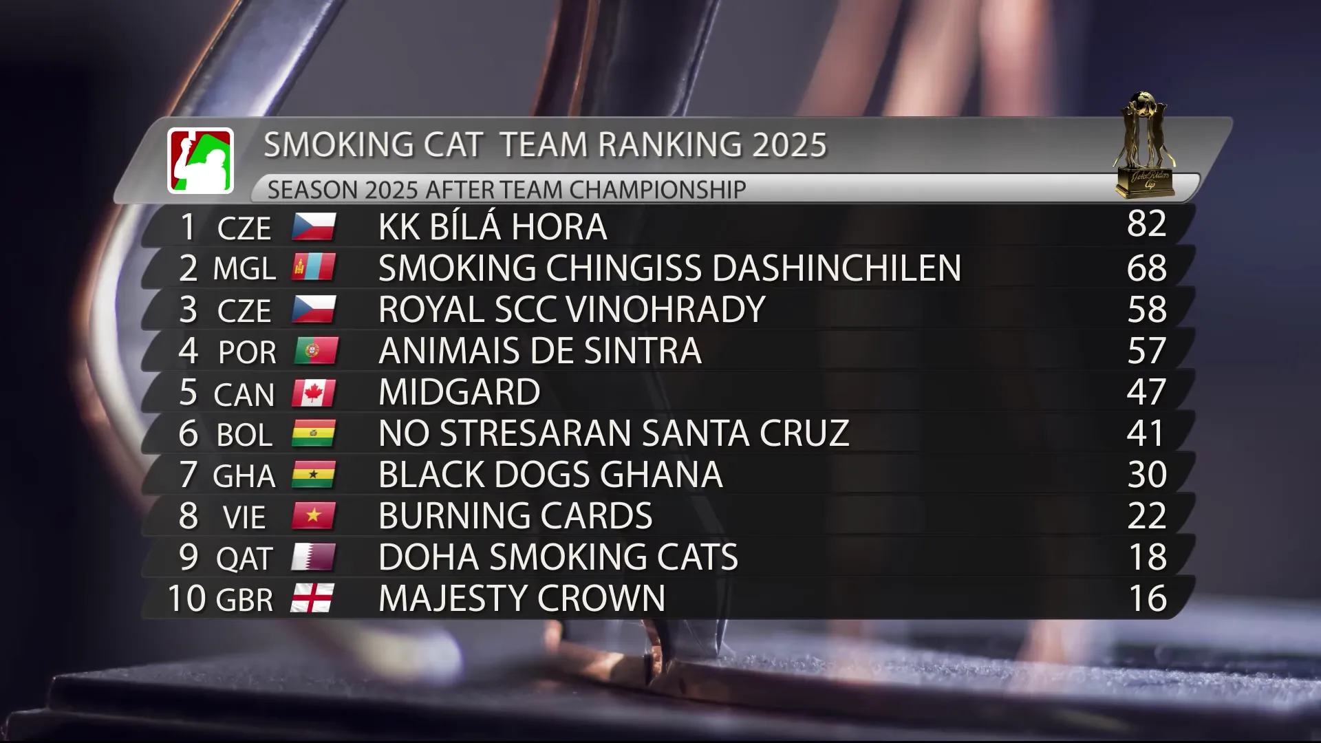 Jako mistrovství Bílé Hory vypadá letošní sezóna Smoking Cat Elite. Již před Světovou sérií se mohli pochlubit zdrcujícím vítězstvím na Team Championship a dalšími třemi individuálními tituly a do největší akce sezóny mohli s přehledem nasadit všech pět hráčů. Do Světové série však zasáhlo i dalších dvacet pět hráčů a mnozí s motivací právě tady KK Bílá Hora porazit. Leč dopadlo to jako vždycky, jak by řekl klasik.